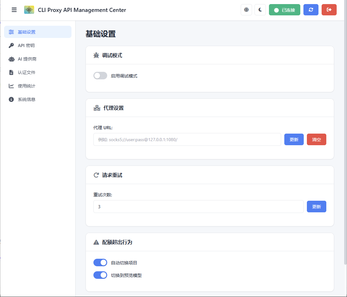 这两个项目旨在降低普通用户的使用门槛。EasyCLI 是桌面客户端,而 WebUI 是 Web 管理界面,它们都通过连接 CLIProxyAPI 来工作。