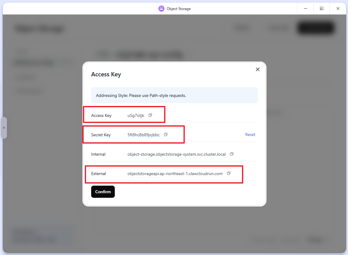 1 | OBJECTSTORE_ENDPOINT=External值 |