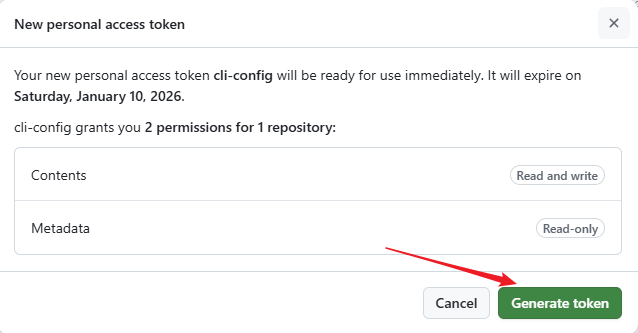 确认权限设置无误后,点击页面底部的 Generate token