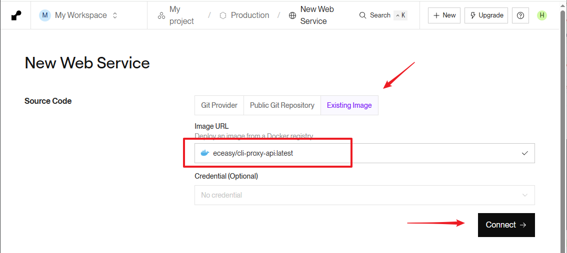 URL 中输入 eceasy/cli-proxy-api:latest